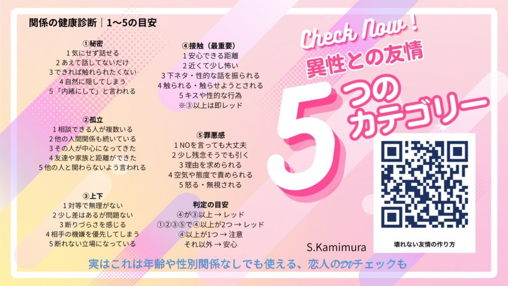 自分の感覚を信じて、安全な関係を築く第一歩にしてください。